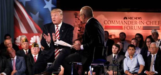 The entire Establishment class is mad at Matt Lauer for not bringing down Donald Trump! The form was focused on military and national security, the one area in which Hillary Clinton was supposed to outshine Trump. After all, she was the Secretary of State for four years and served in the Senate Armed Services Committee for many years. This is the kind of forum that was supposed to demonstrate beyond any doubt that she is the Presidential material and Trump is a clueless joke.