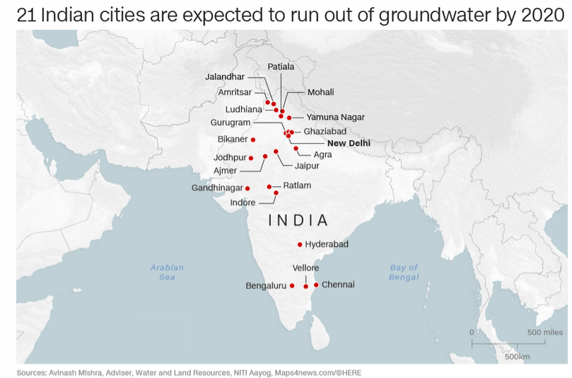 Environmental Problems: India faces daunting environmental problems such as pollution and depleting groundwater. 21 cities in India will run out of groundwater this year.