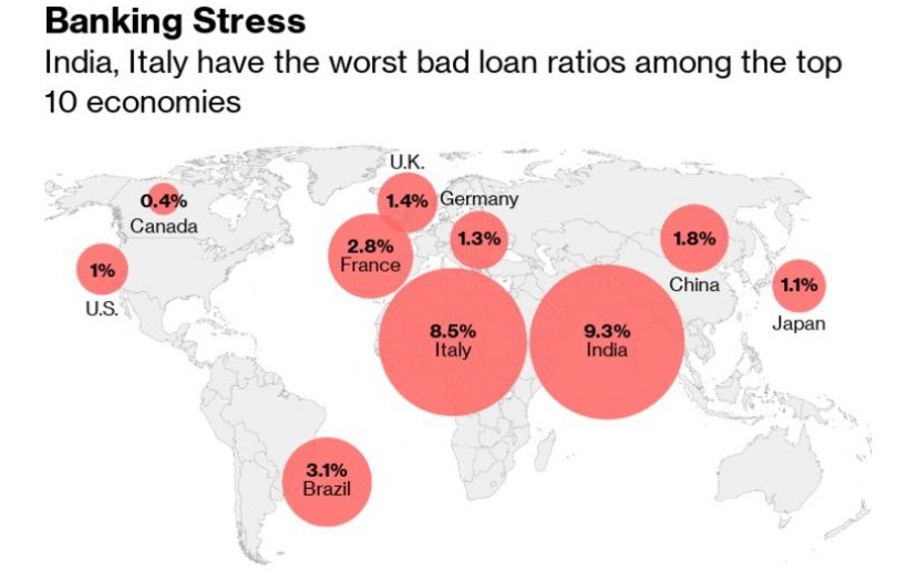 India’s banks are stuck with non-performing loans (NPL) and are ripe for a giant catastrophe like America’s financial crisis of 2008.