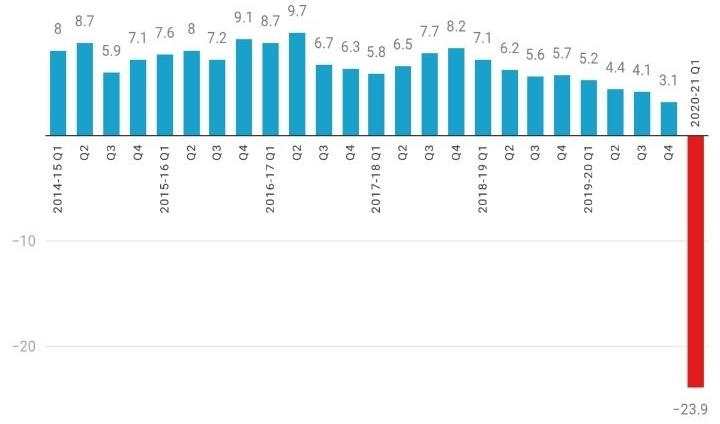 GDP growth: Even before the coronavirus pandemic, India’s GDP growth had dropped to about 4%. In the Apr-Jun quarter, the growth plummeted by 24%, the worst among the world’s large economies. And Goldman Sachs forecasts that India’s GDP will shrink by almost 15% this year!