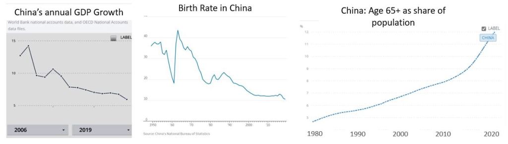 The Chinese economy is also slowing down due to many reasons — maturing economy, high debt, shrinking workforce, aging population etc. After this year, China’s annual GDP growth rate will never hit even 5%. Experts predict that China’s economy will be growing at 2-3% before the end of this decade.