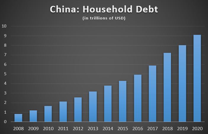 As for the regular people, housing speculation was a guaranteed winner. Everyone assumed that the government would never let house prices go down. So, they borrowed and borrowed, buying as many homes as possible. The Top 10% of households have three or more homes. The mania continued and household debt grew tenfold from 2008 to 2020.