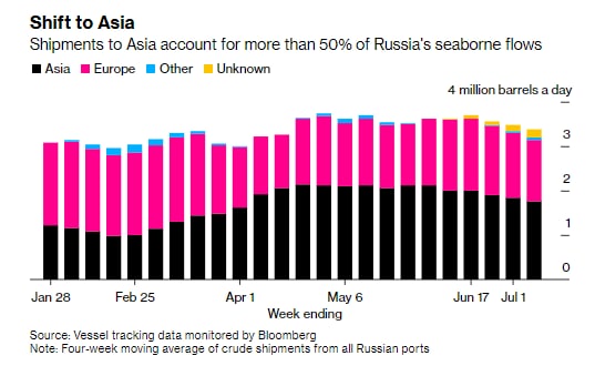 Whatever oil and gas that Europeans refuse to buy from Russia … will be bought by other countries such as India, China, and Brazil. Even Saudi Arabia is now buying more refined petroleum products like diesel from Russia.