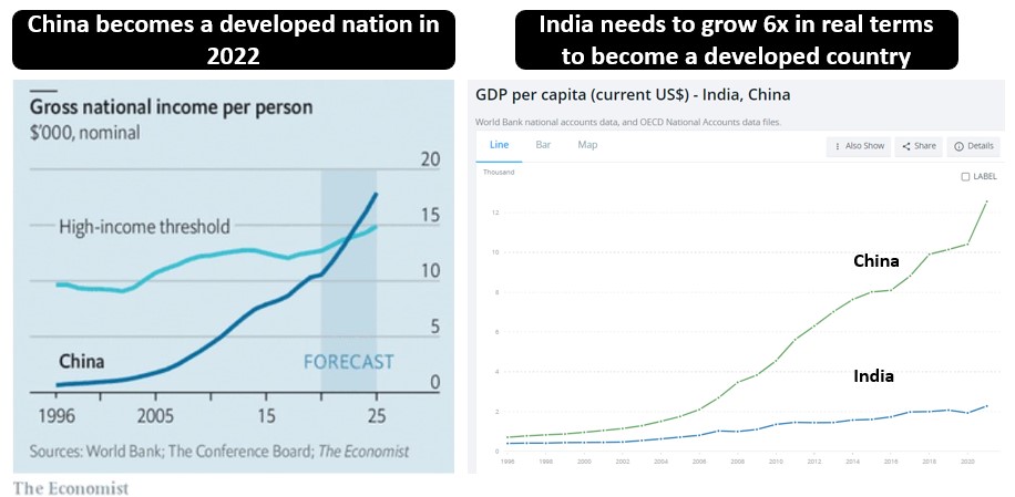 Okay, that sounds good. And it’s nothing new. This is the proven model used by Japan after WW2 as well as South Korea, Singapore and China starting in the 1990s. As for China, it will officially become a developed or a high-income nation this year, with a GDP-per-capita of about $13,000. Although China and India were at the same boat 40 years ago, China has surpassed India in incredible ways. Thus, it’s good for India to study all the successful Asian countries and learn from them.