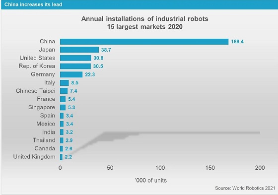 One more thing: India needs to modernize its manufacturing. China is the global leader not because of cheap labor. Chinese wages are 4x to 10x higher than in India. China leverages automation and the 4th Industrial revolution. Chinese firms buy more than 40% of all industrial robots in the world — 50 times more than India.