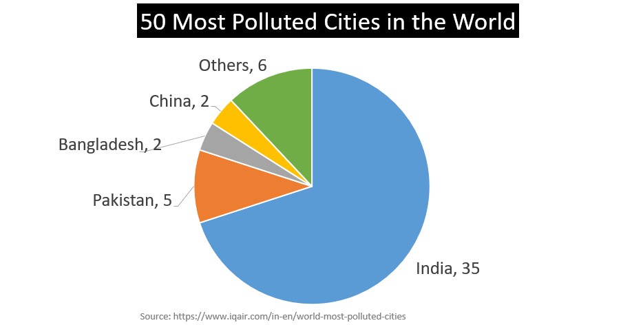 Consider that India ranks 101 out of 116 countries in the Global Hunger Index; and it ranks at the very bottom — 180 out of 180 — in the Environment Performance Index. As for water, 70% of tap water in India is contaminated; and Indian ranks 120 out of 122 in Water Quality Index. And in the World’s Most Polluted Cities list, 6 out of top 10 as well as 63 out of top 100 are Indian cities. Embarrassing!