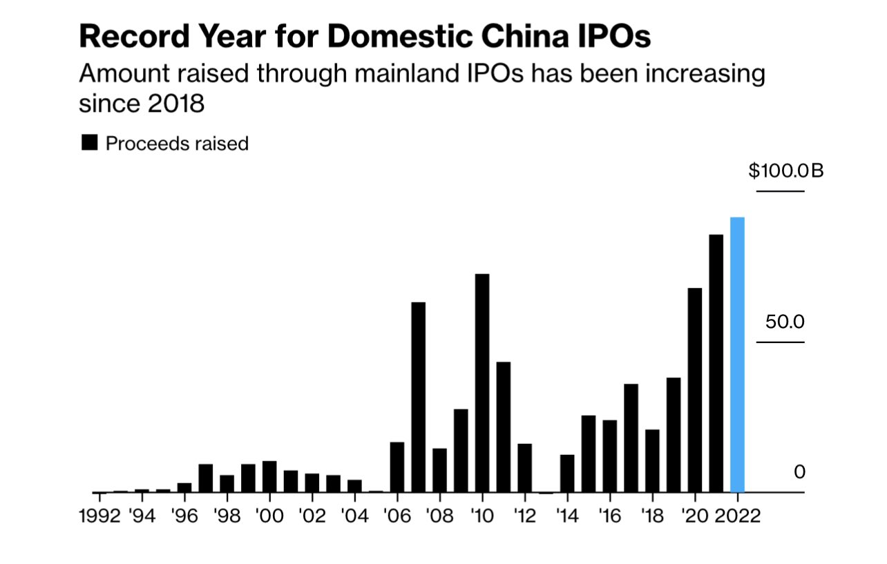 - China had record IPO! China was #1 in the world for IPO — both in number of companies that went public and in money raised. Chinese startups raised record $92 billion in Shenzhen, Shanghai and Beijing exchanges — accounting for almost half of global IPO in 2022. That was 10x the US, which had an abysmal year when just 130 deals managed to raise a pitiful amount of $9 billion. IPOs in the USA were down a shocking 95% from the previous year.
