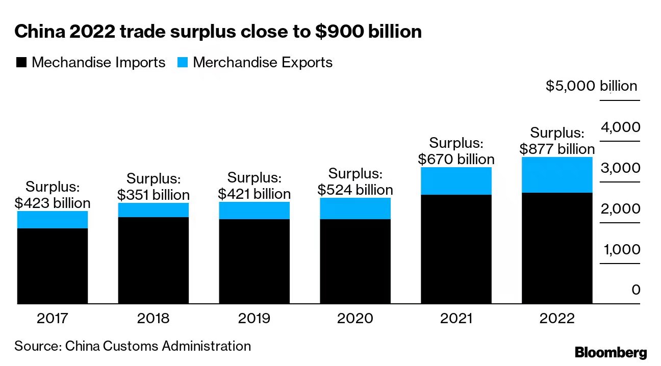 - China had record trade surplus! While the US likely had record trade deficit, China had record trade surplus in 2022… a mind-blowing amount of $877 billion. That’s larger than the GDP of Turkiye, the 20th largest economy in the world!