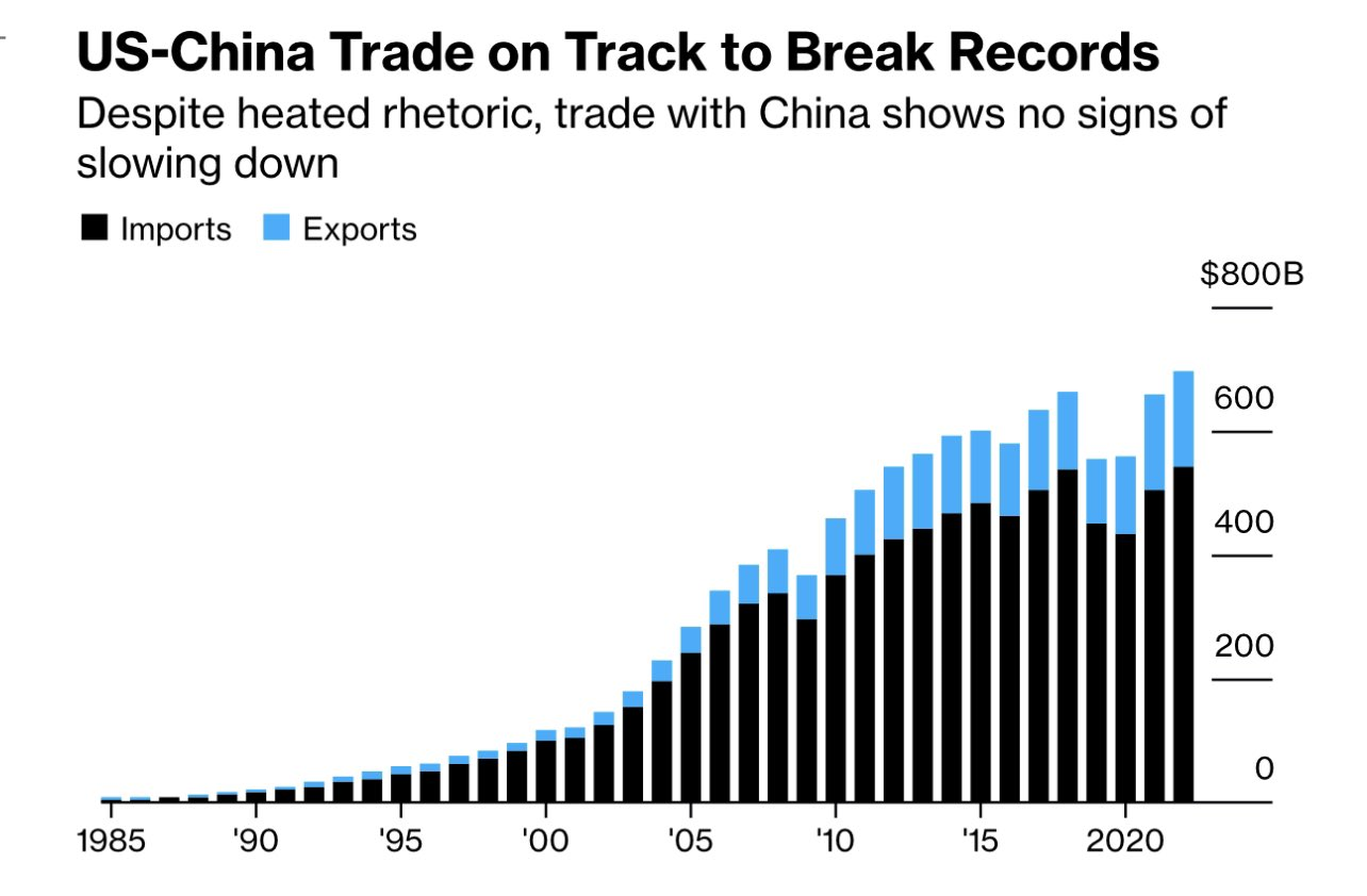 - US-China trade also hit a record! While the full number are not out from the US, the bilateral trade will be more than $700 billion. Of course, much of it would be U.S. imports from China. No decoupling yet, but keep dreaming!