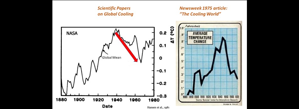 Below are screenshots from a 1981 scientific paper by Hansen (the famous NASA climate expert who later became the priest of global warming) and Newsweek article from 1975, titled “Cooling World.”