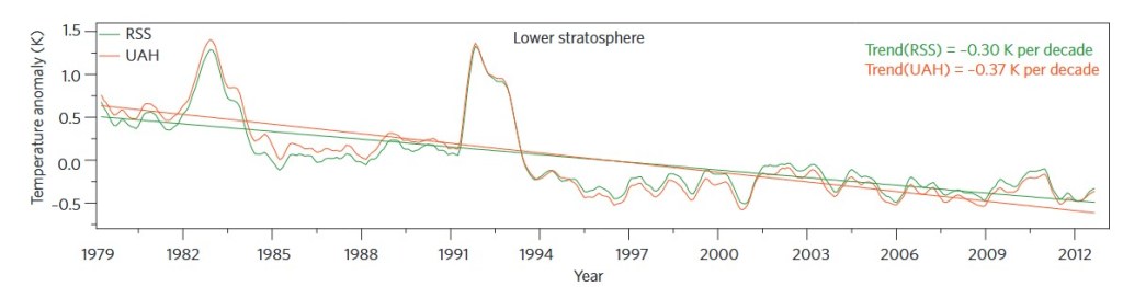 The above chart is for stratosphere and the scientists have some illogical explanation about how this is normal and is in fact caused by… global warming!
