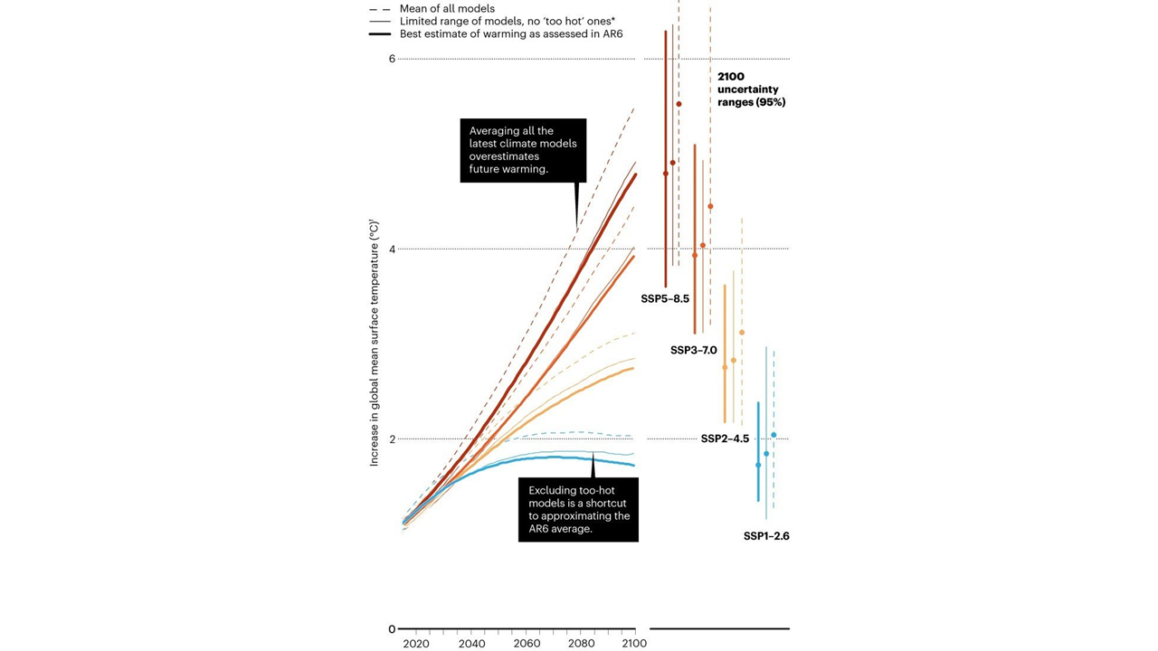 And these models have a wide range of outcomes and predictions. For example, how much hotter will the earth be in year 2100? The estimates vary from +1.7°C to +5.7°C!
