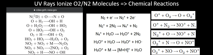 Furthermore, due to the interaction of O2 and N2 molecules with solar radiation, all kinds of excited and ionized atoms and molecules are created in the atmosphere (including ozone). These reactive substances have great ability to absorb infrared radiations, since they are asymmetric and can vibrate in many ways. However, climate scientists conveniently ignore these to keep the narrative simple.