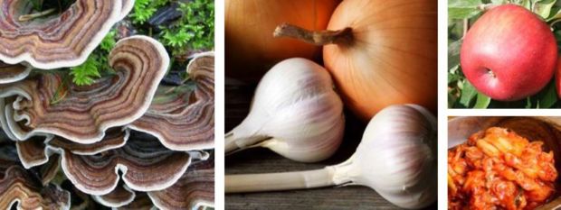 • Lots of fiber — Probably the most important factor for immunity. The Standard American Diet now has about one-third of the fiber that Americans used to eat in the 19th century, when obesity, diabetes, and cardiovascular diseases were rare. Fiber is what we cannot digest … but it’s the only food for the trillions of gut bacteria in our large intestine. The gut microbiome trains our immune system.