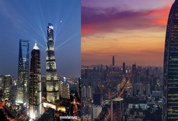 Guangzhou CTF Finance Center (on the right) at 530m and Guangzhou Finance Center at 440m (on the left)
