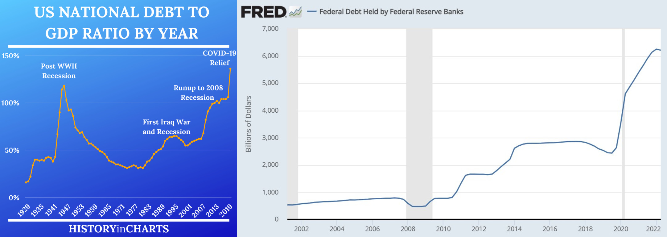 Furthermore, there are not enough buyers of US treasuries. Thus, since the 2008 financial crisis, the Federal Reserve Bank has been creating trillions of dollars literally out of thin air and buying the US debt (treasury bonds). This is voodoo economics and not sustainable.