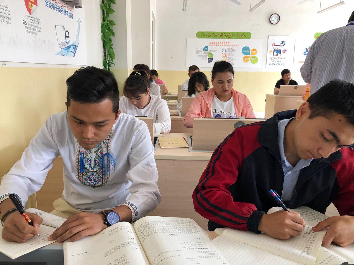 Uighurs at a detention facility in Kashgar study Mandarin. They also study Chinese law and a variety of vocational skills. NPR visited the facility as part of a Chinese government-sponsored tour.